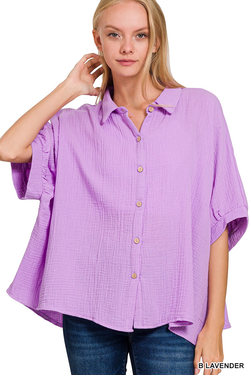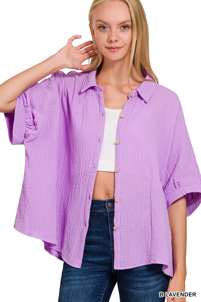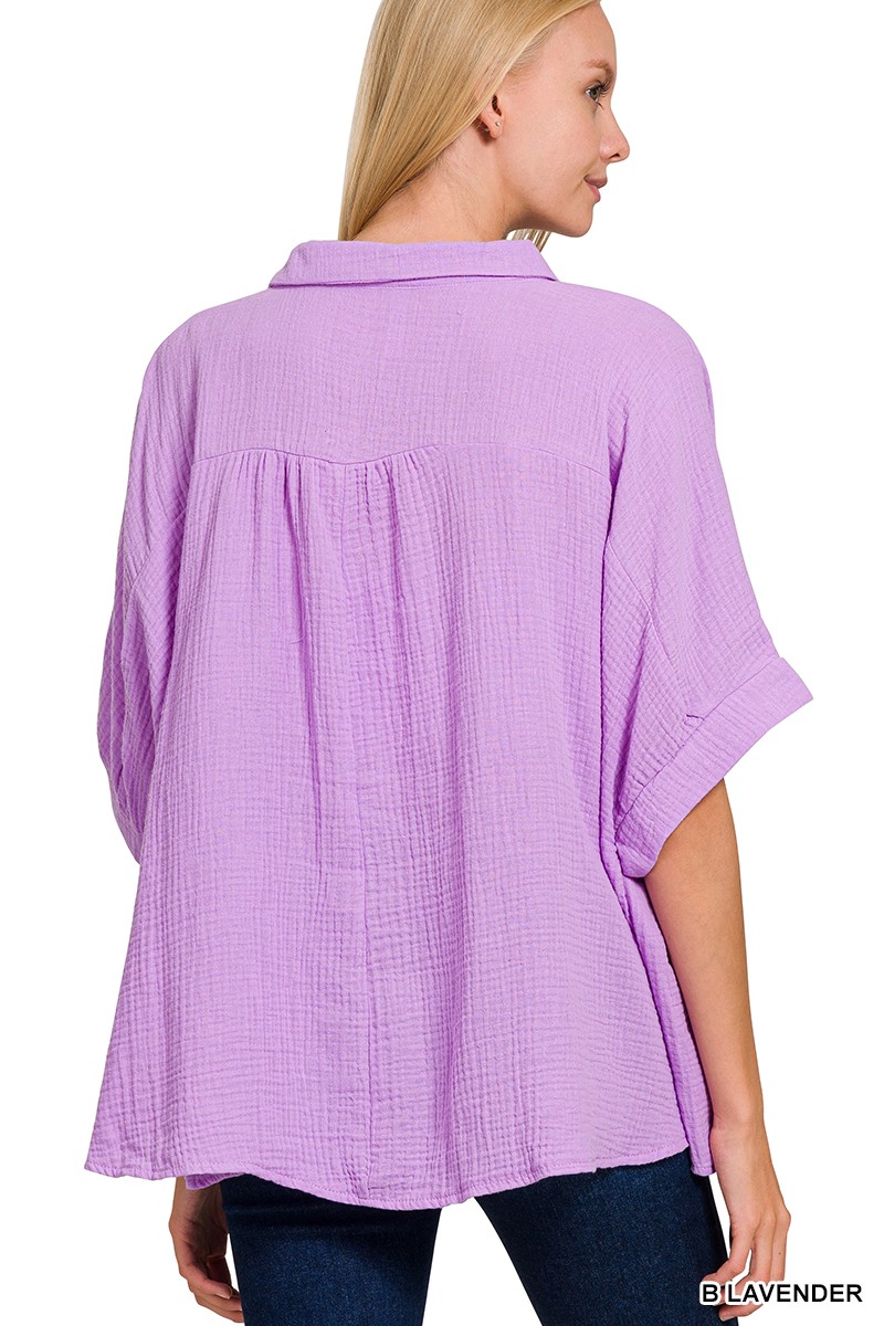 Zenana Double Gauze 3/4 Sleeve Button Up Shirt