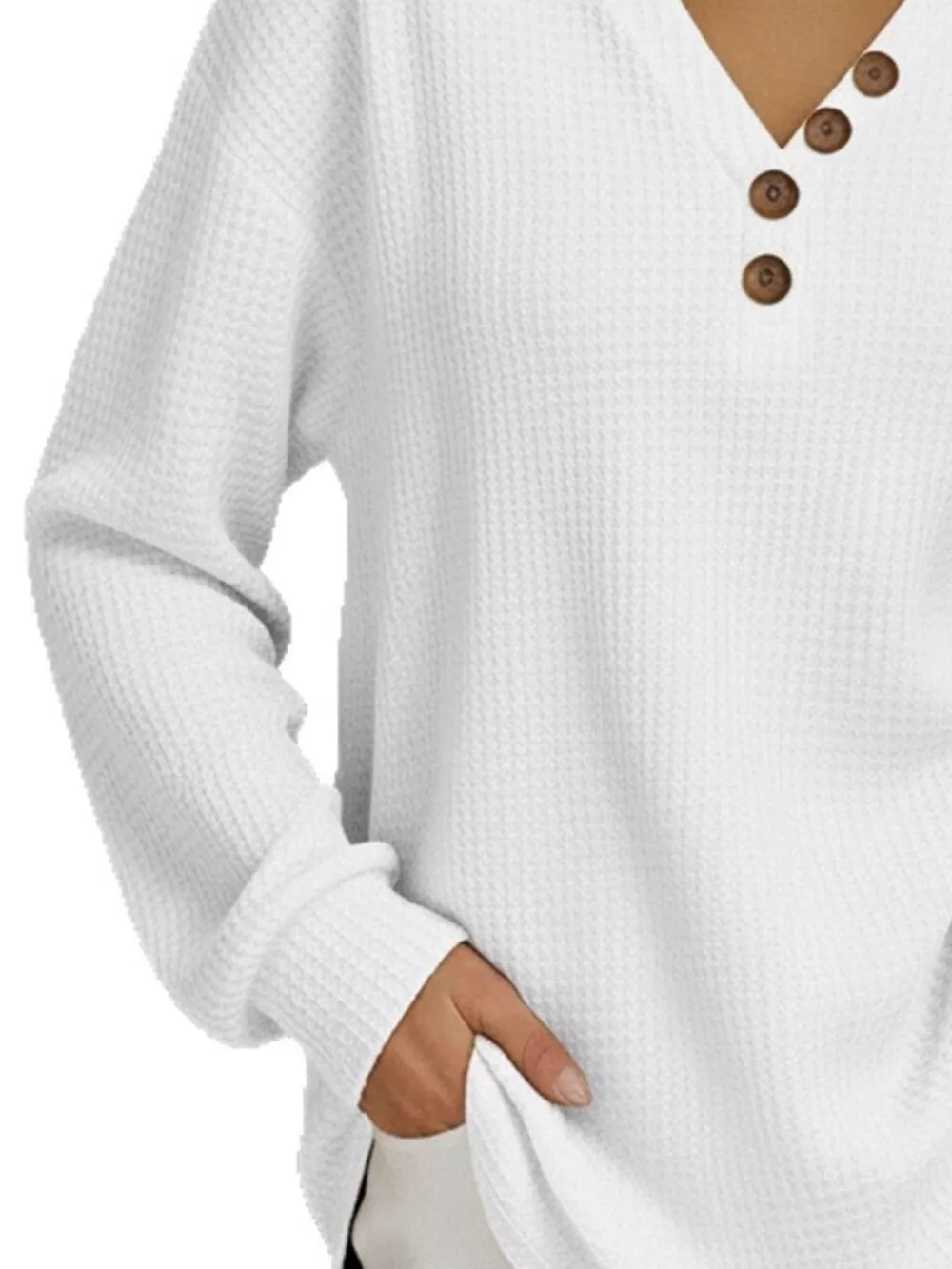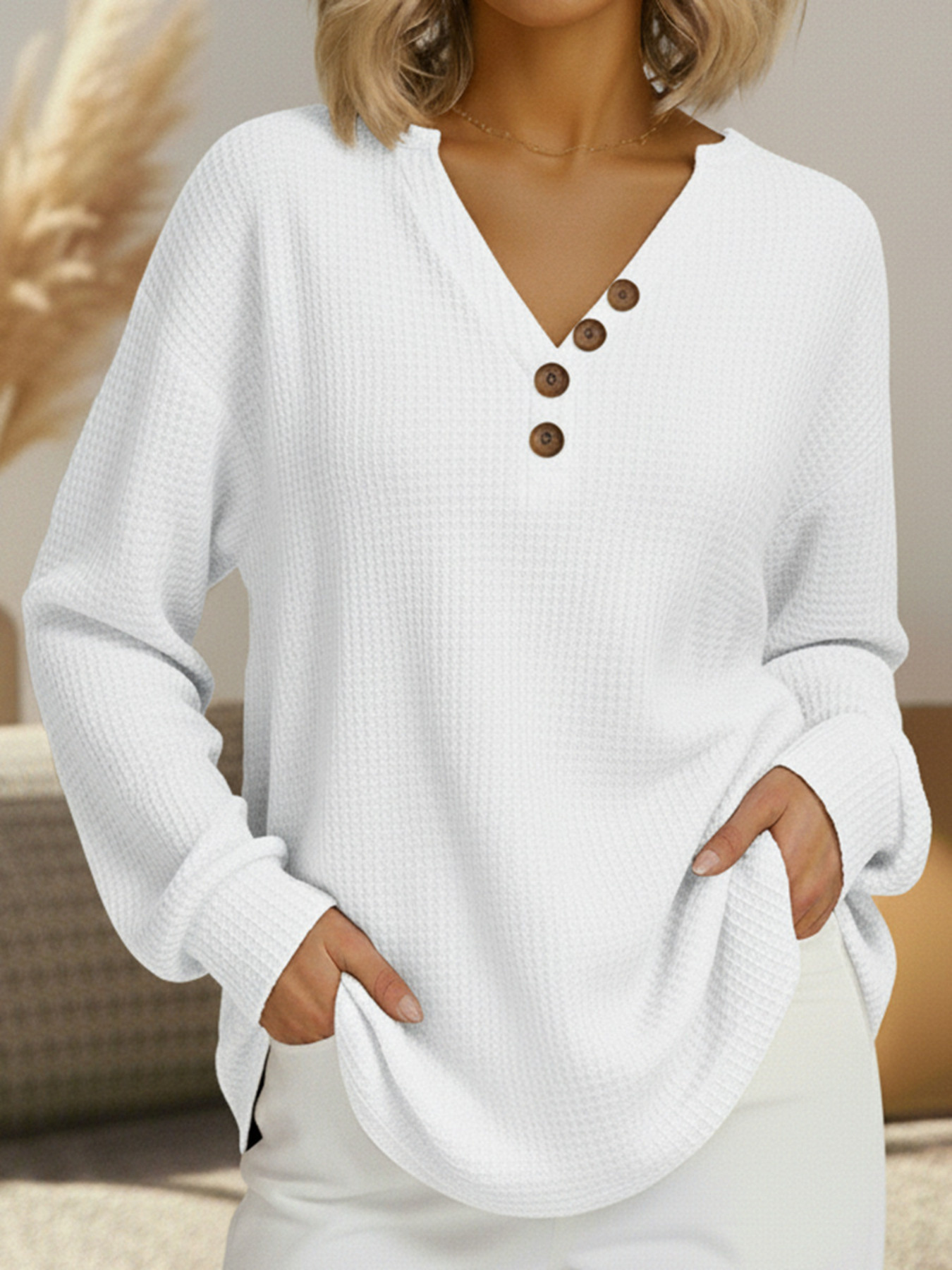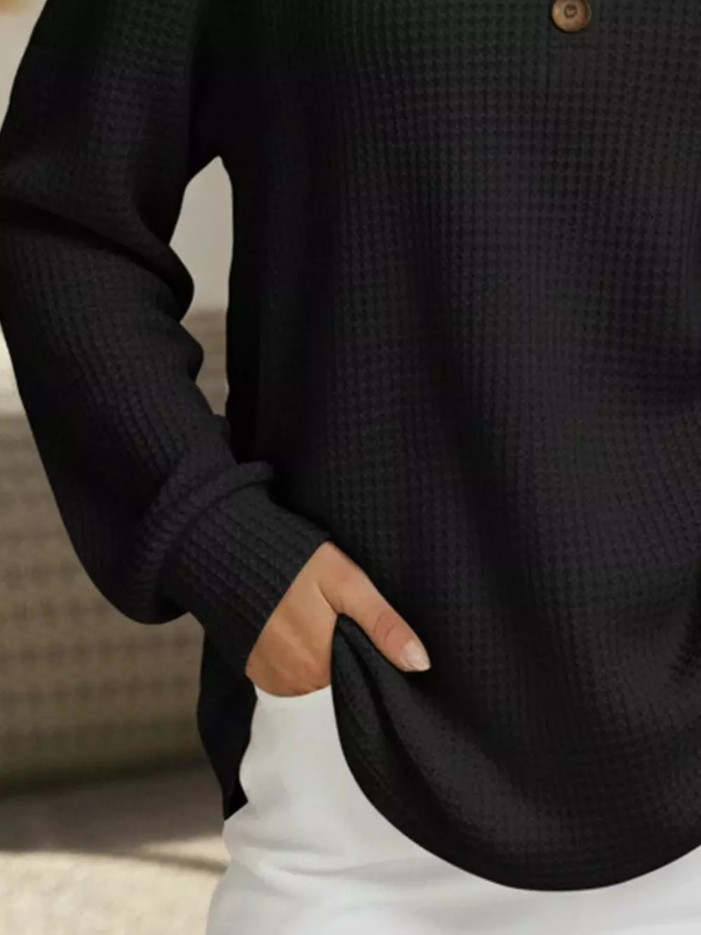 Full Size Casual Waffle Knit Long Sleeve T-Shirt Plus Size