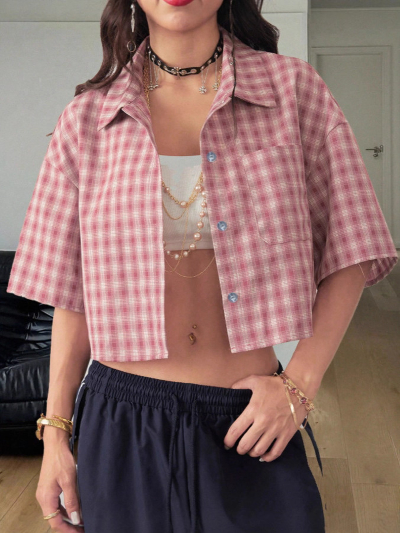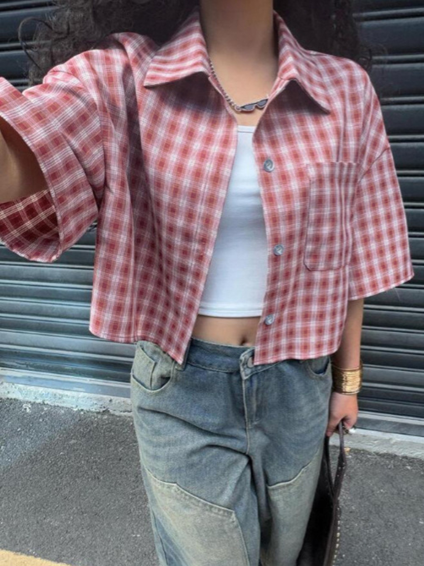 Plaid Button Up Cropped Shirt