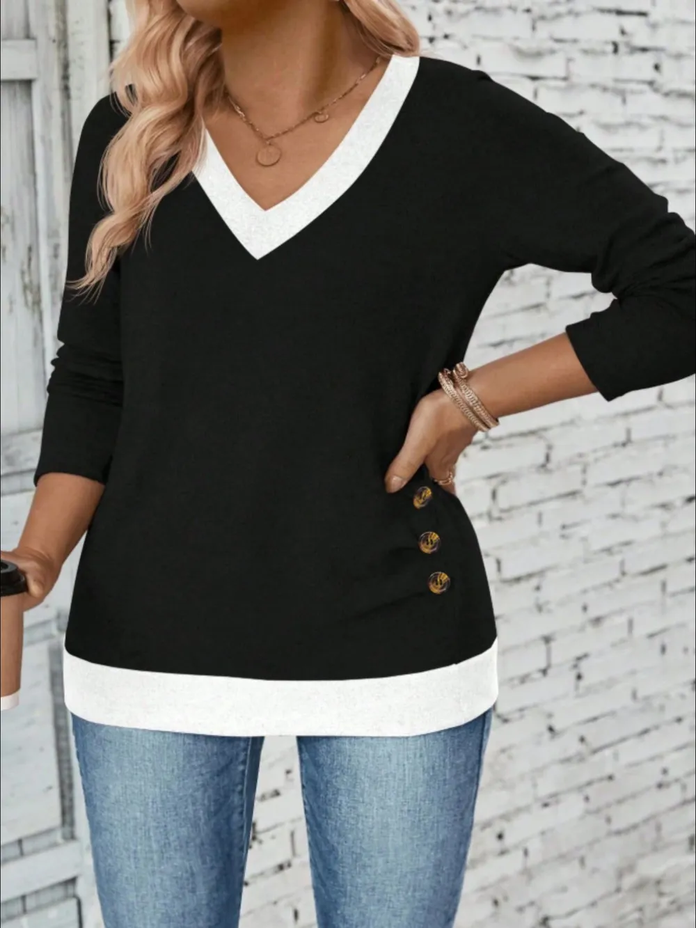 Plus Size V-Neck Contrast Trim T-Shirt