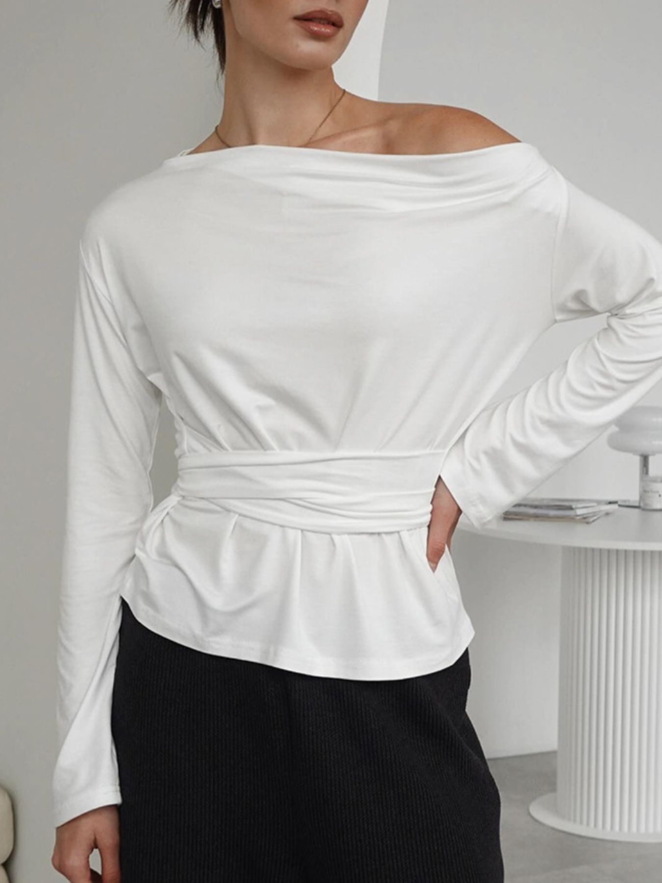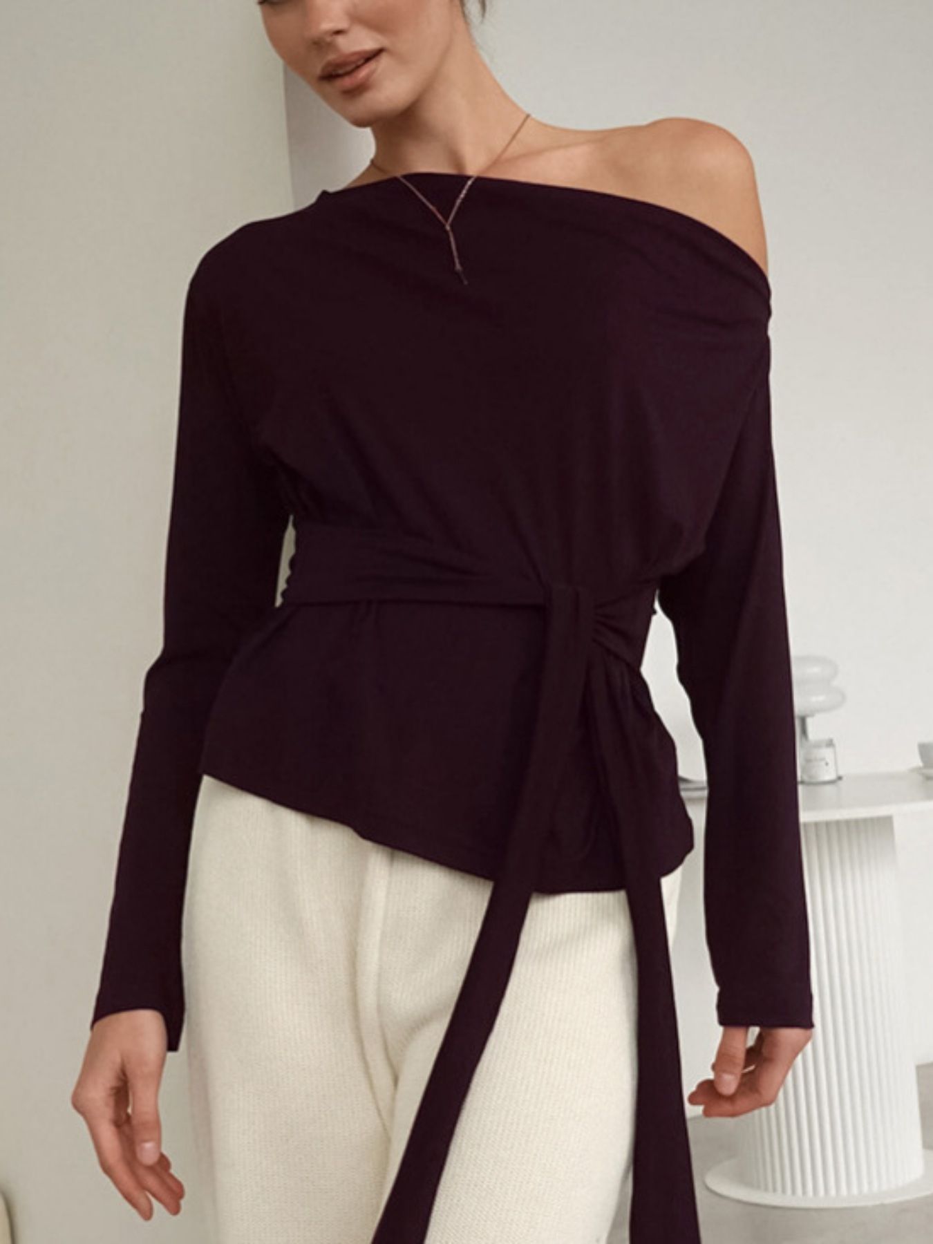 One Shoulder Long Sleeve Top