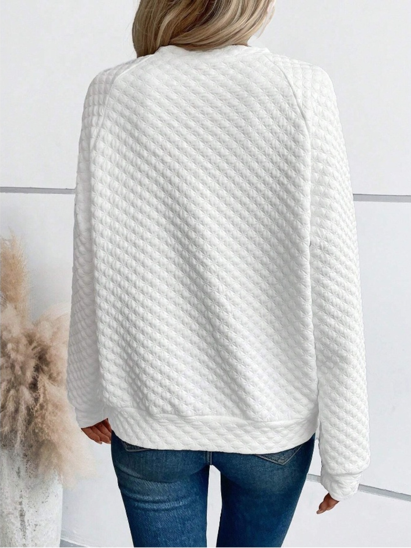 Textured Notched Raglan Sleeve Sweatshirt