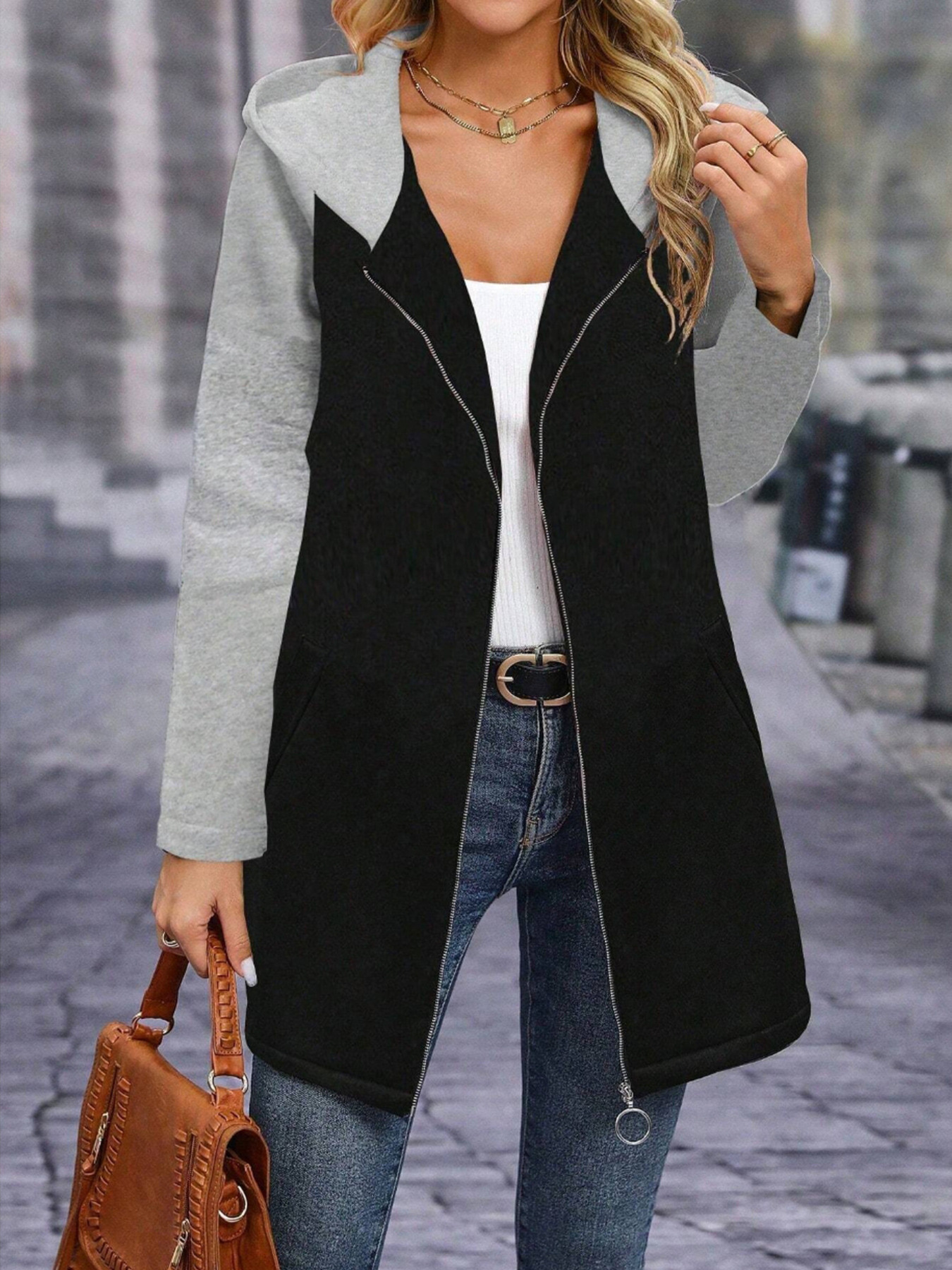 Full Size Zip Up Hooded Longline Outerwear Plus Size
