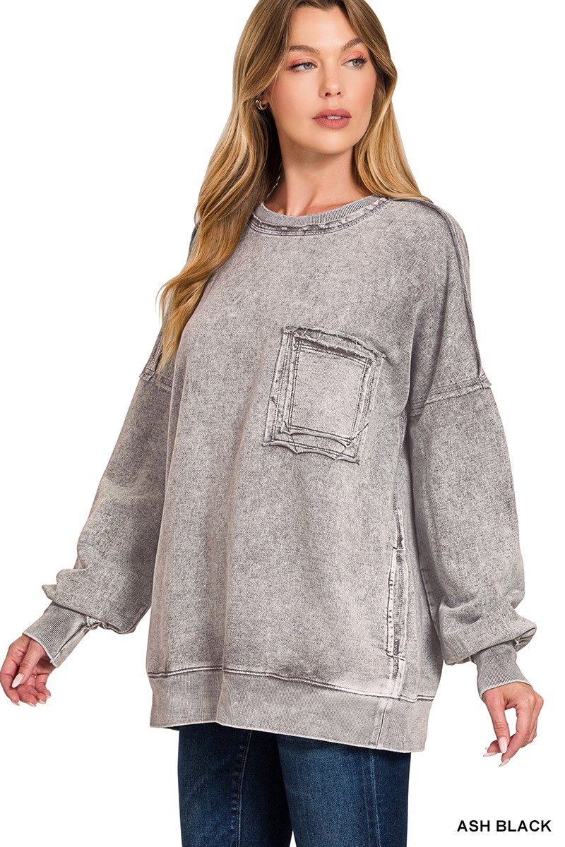 Zenana Halo Washed French Terry Exposed-Seam Sweatshirt