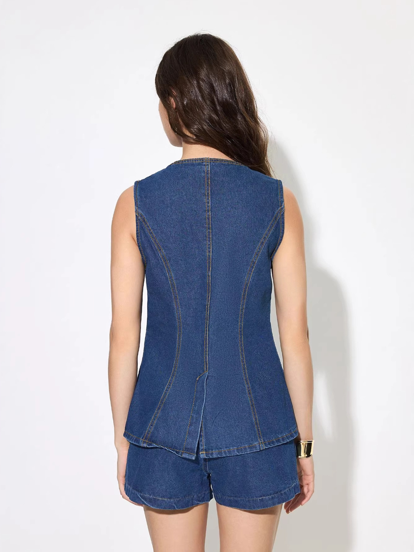 Button Up Sleeveless Denim Top