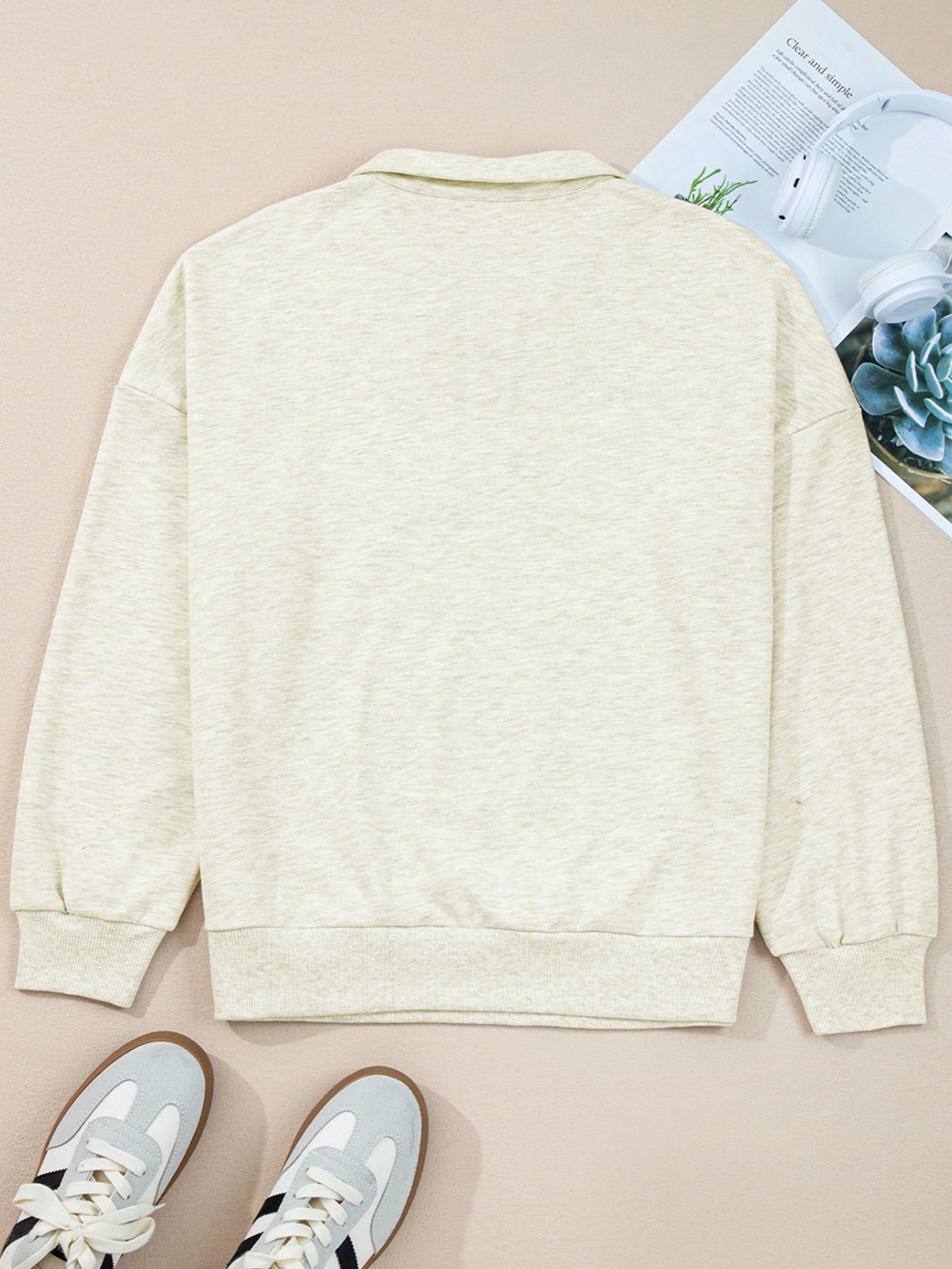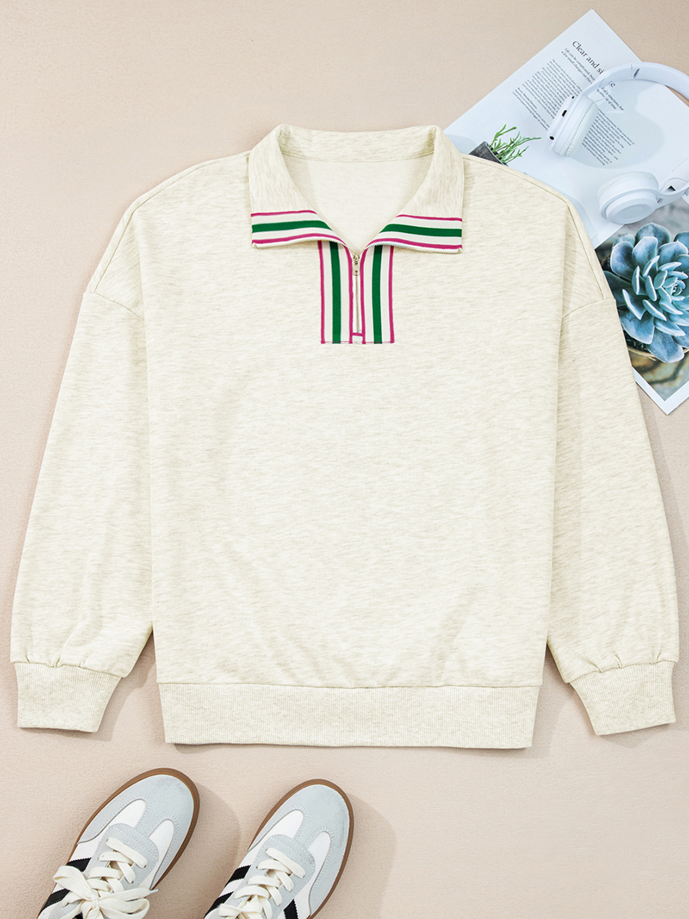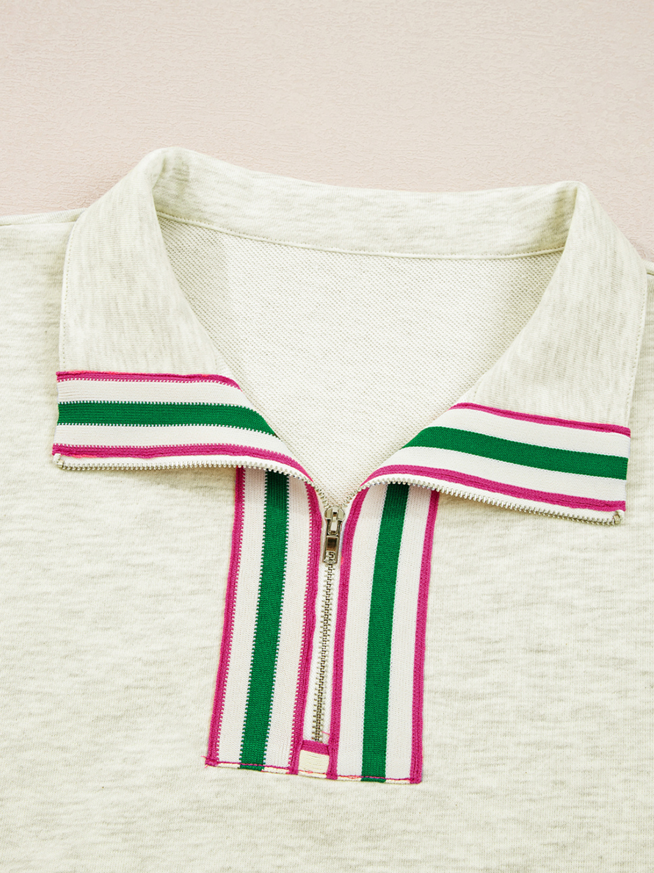 Contrast Striped Patchwork Zip Collar Sweatshirt