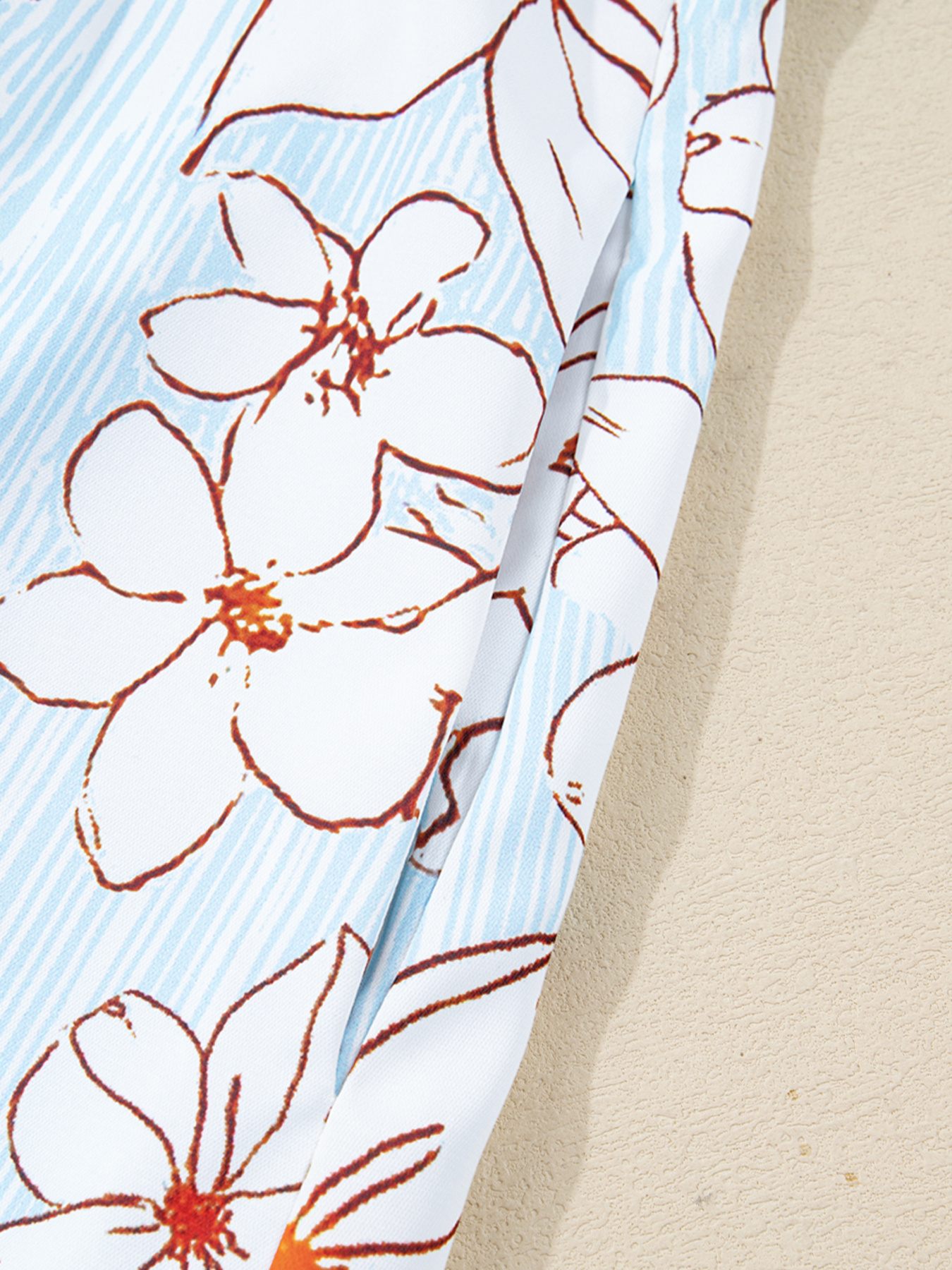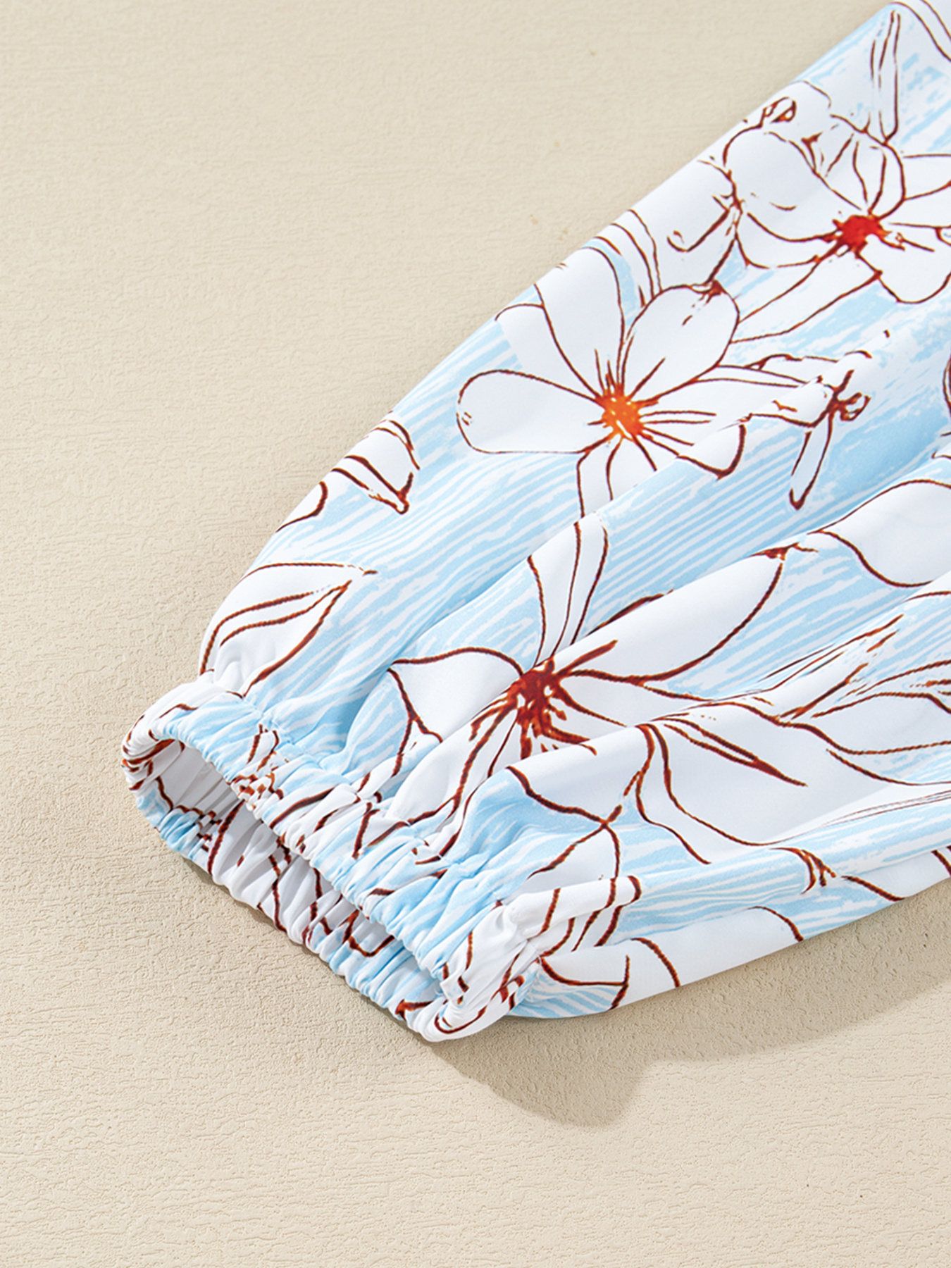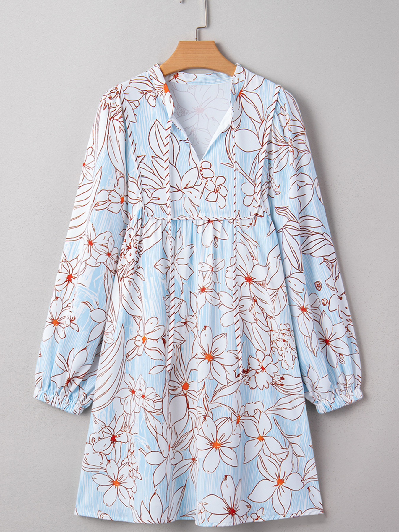 Floral Print Tie Neck Long Sleeve Mini Dress