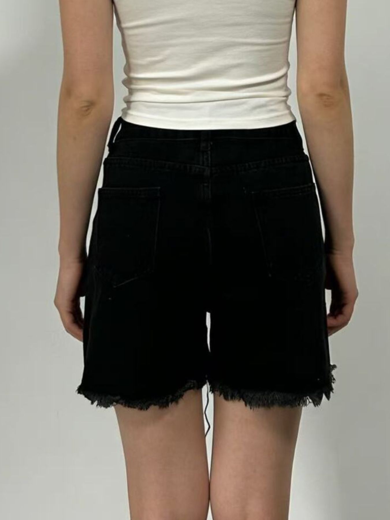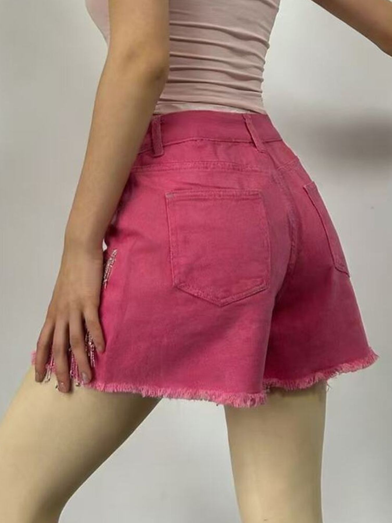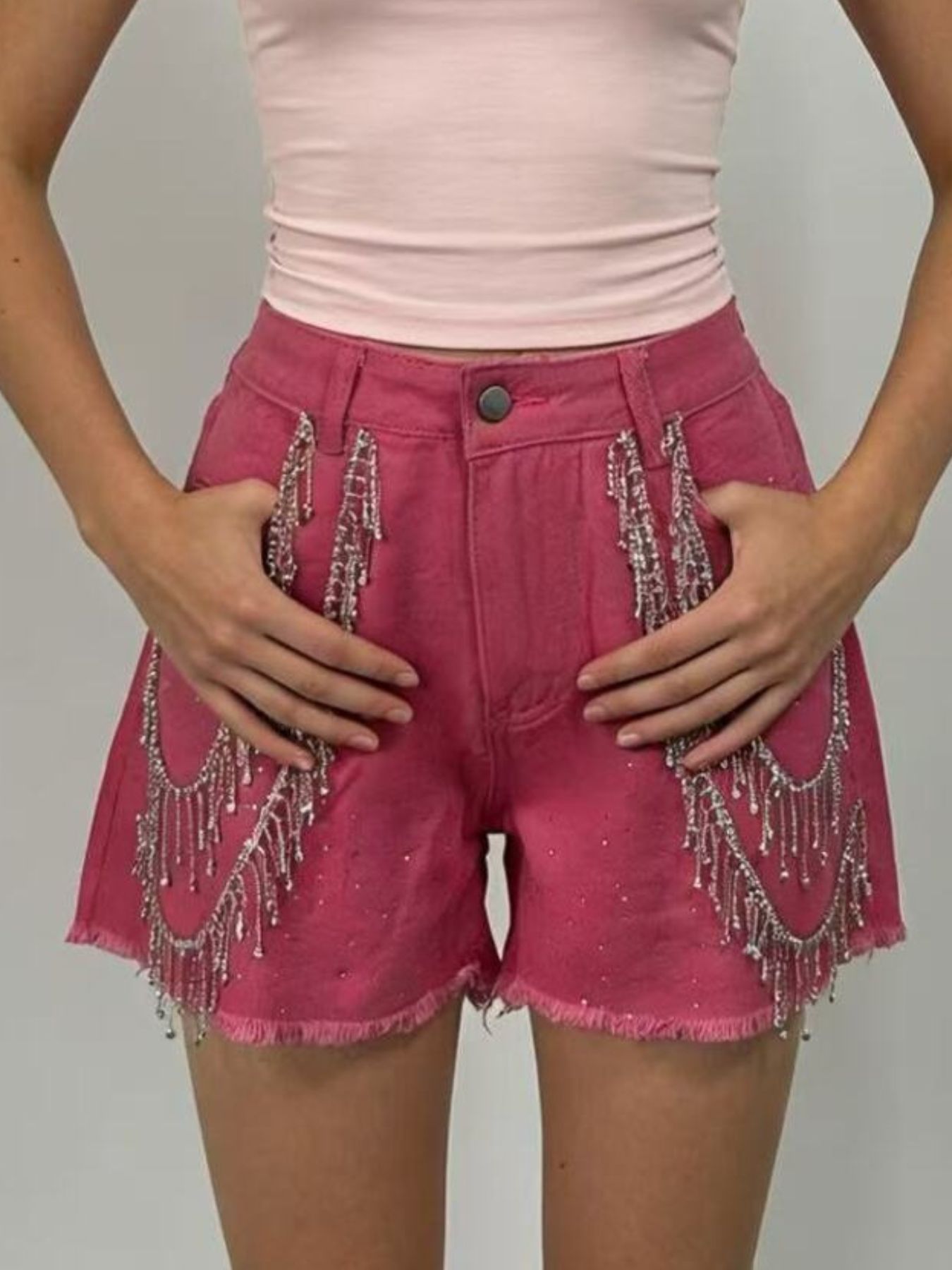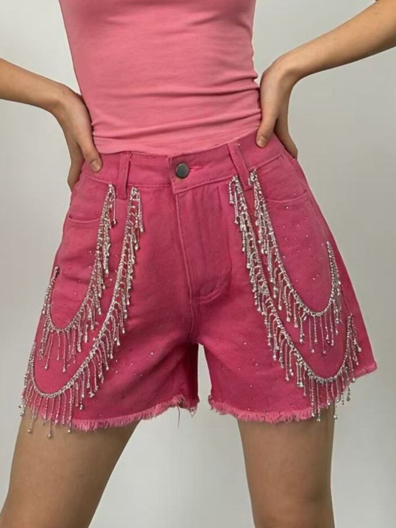 Rhinestone Chain Raw Hem Denim Shorts