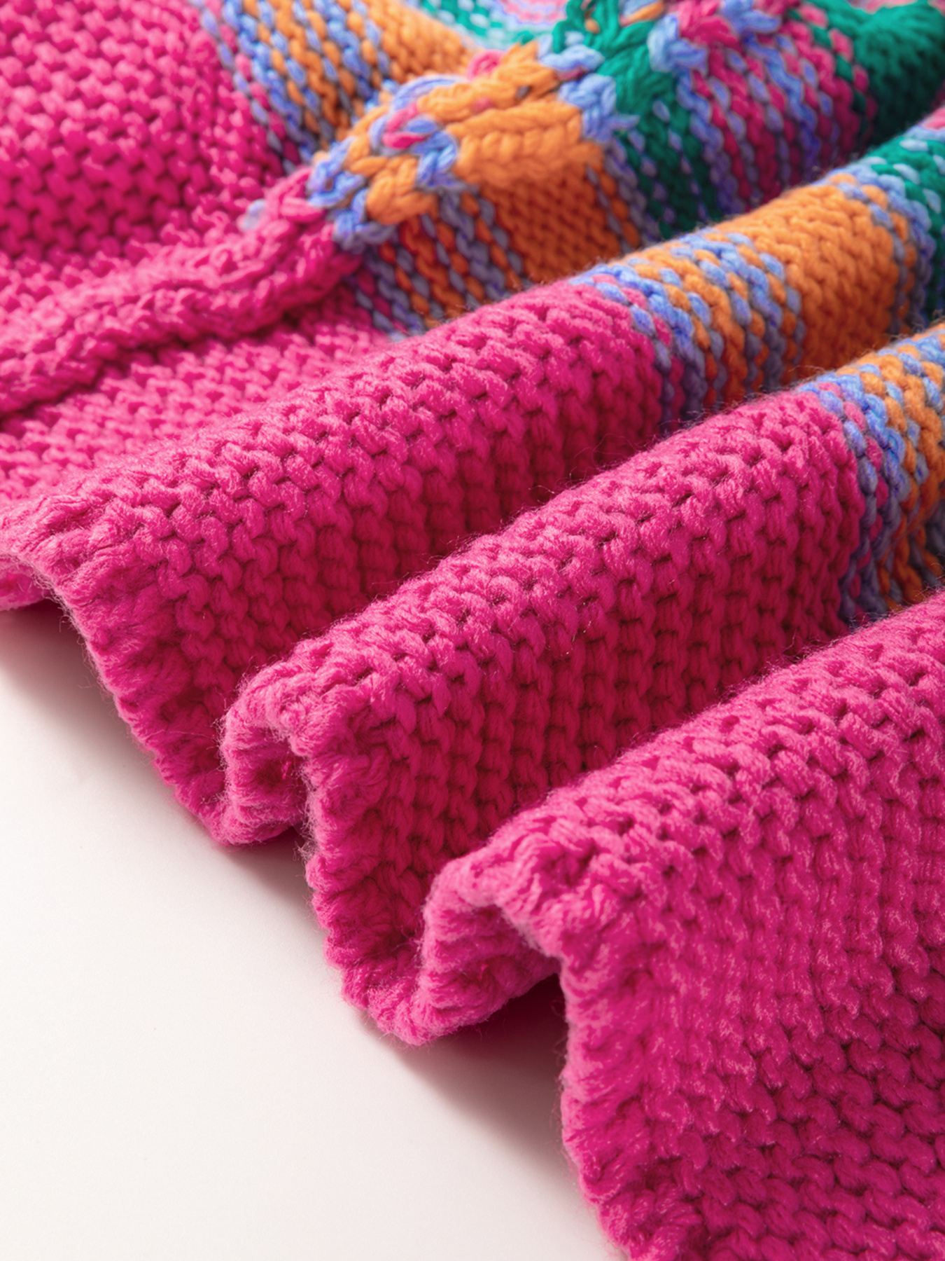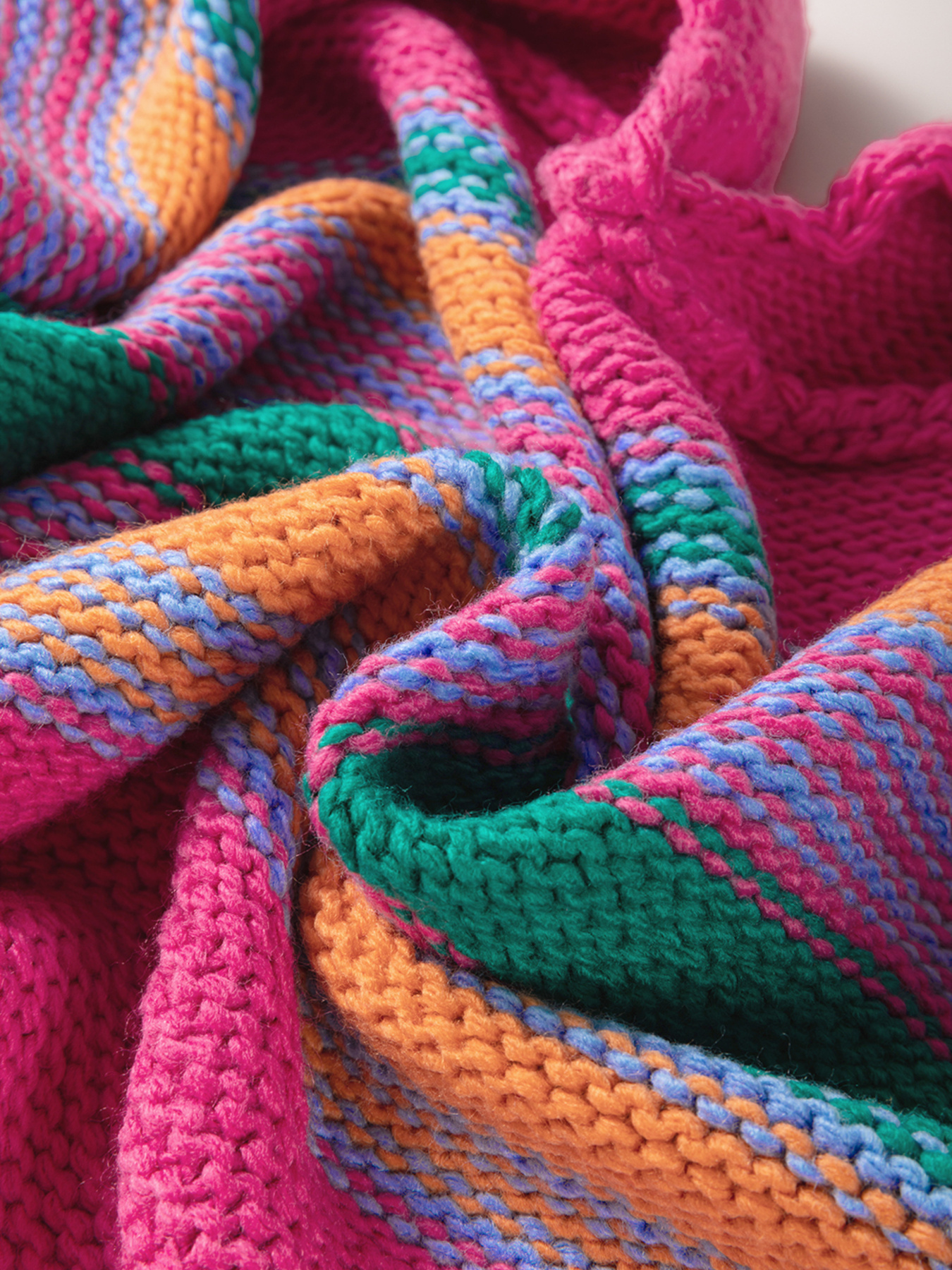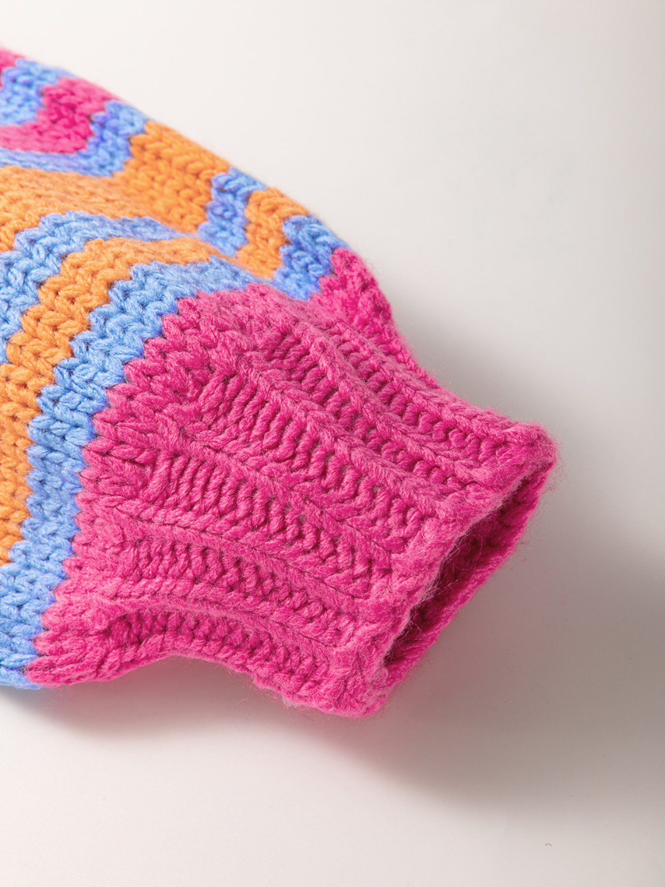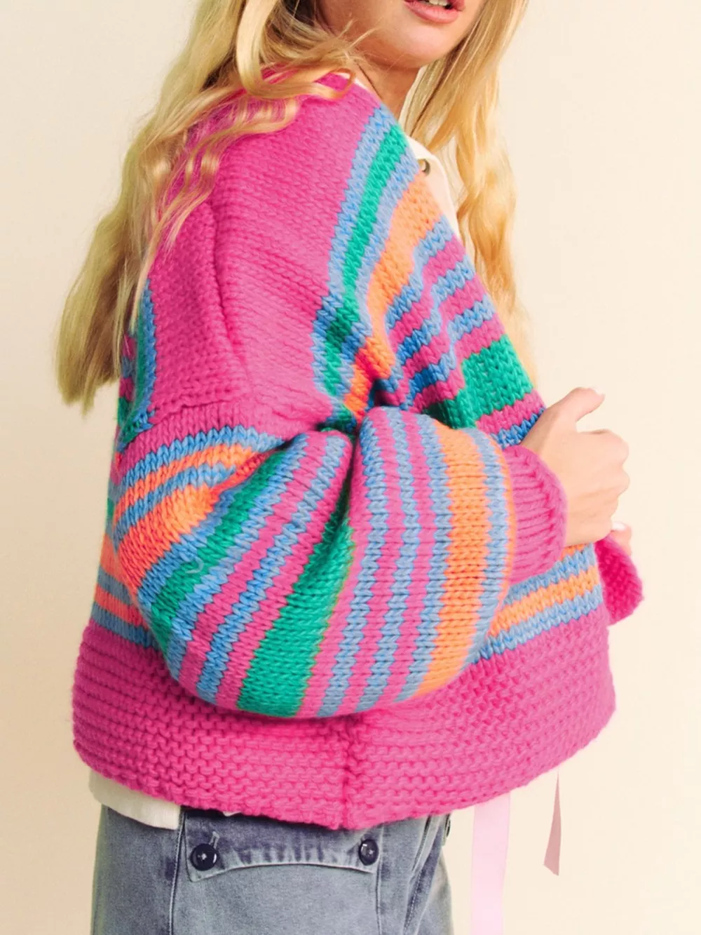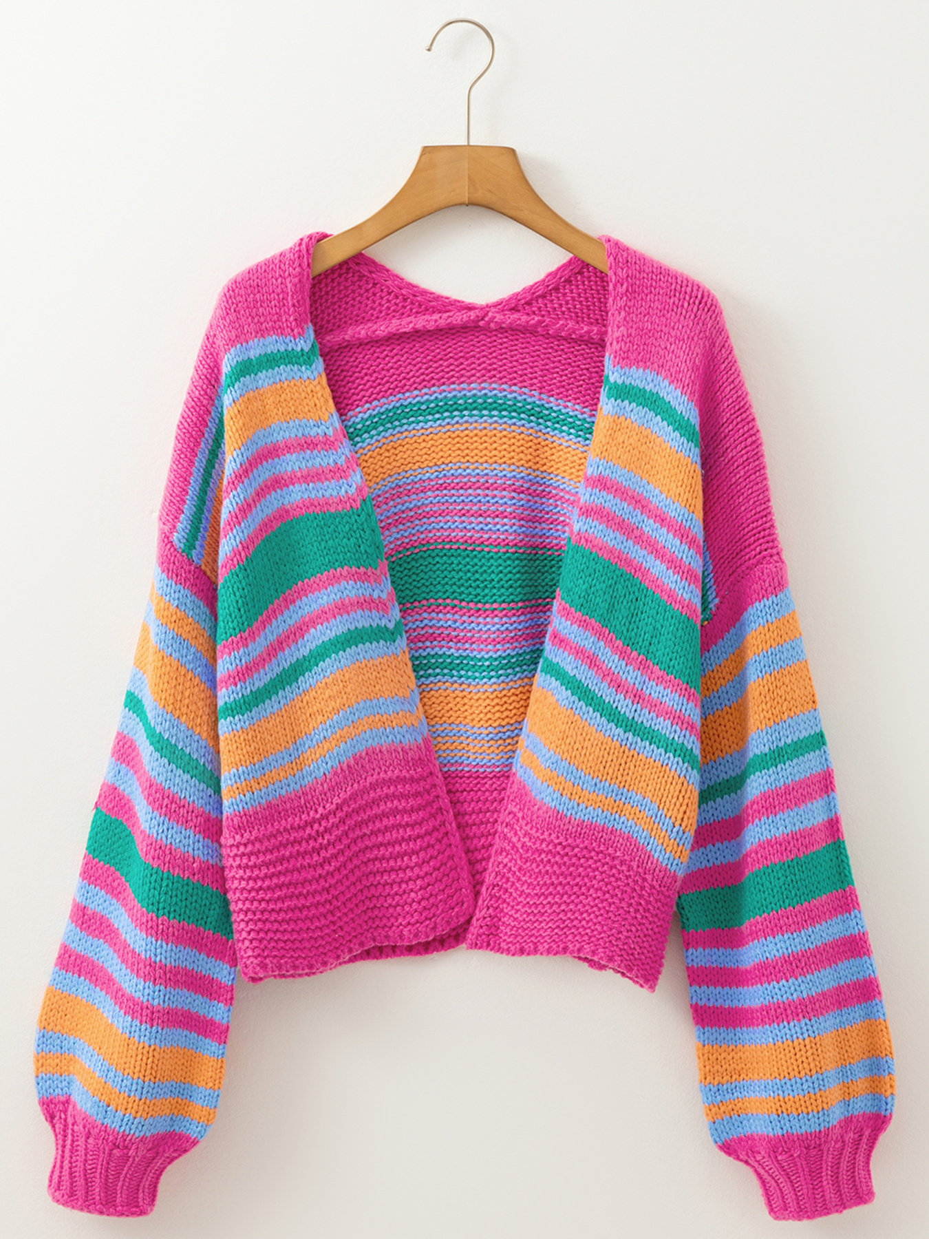 Stripe Colorful Puff Sleeve Drop Shoulder Loose Cardigan