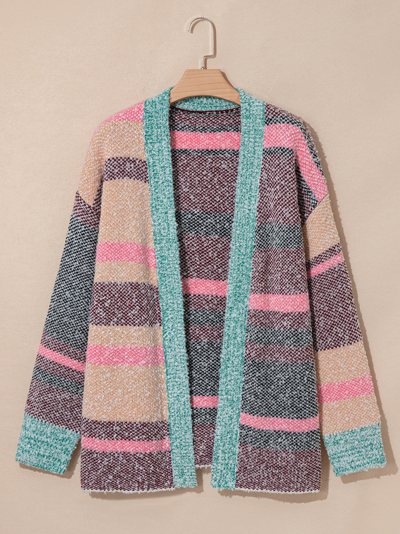 Color Block Striped Side Slit Open Front Cardigan